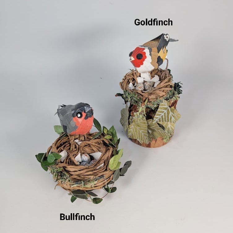 Goldfinch with nest (freestanding). 19cm high x 16cm wide x 9cm deep approx.