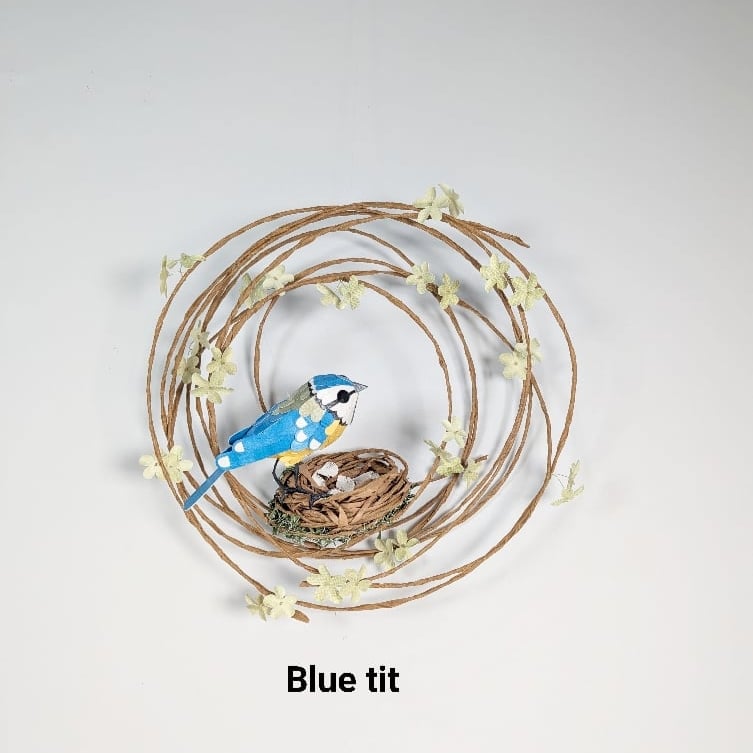 Blue Tit Floral Wreath (wall based or suspended) 30cm high x 30cm wide x 10cm deep approx.