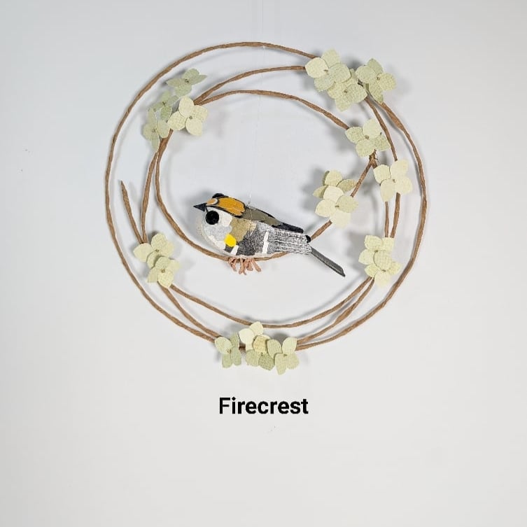 Firecrest Floral Wreath (wall based or suspended) 23cm high x 23cm wide x 4cm deep approx
